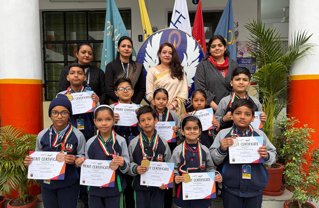 Anmol Sharma Class II A made the school proud by bagging the Gold Medal, Tejas Narang and Vidushi Singh of Classes V B ad V A respectively won the Silver Medals and Ronit Singh, Tanishka Singh and Aradhya Sharma of Classes IV B, V B and V B respectively grabbed the Bronze Medals.